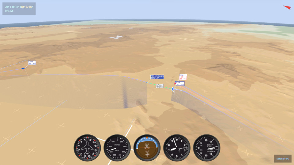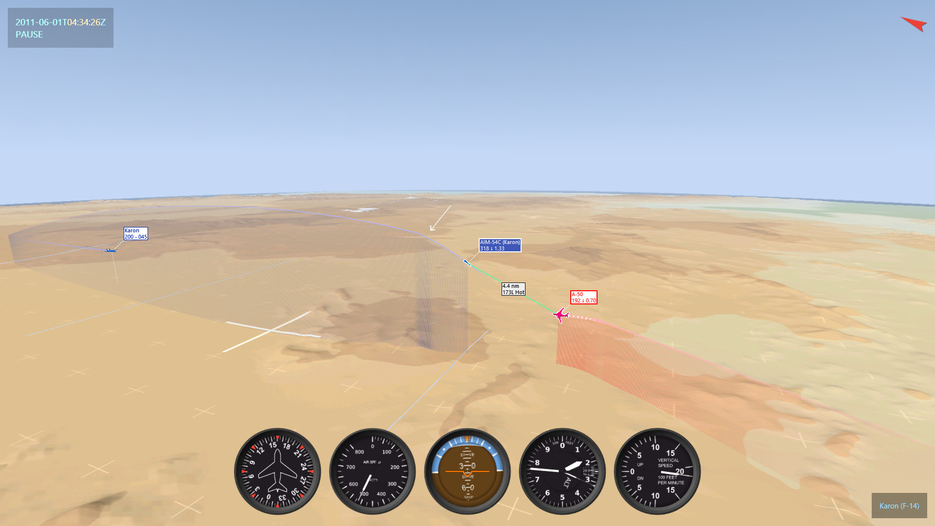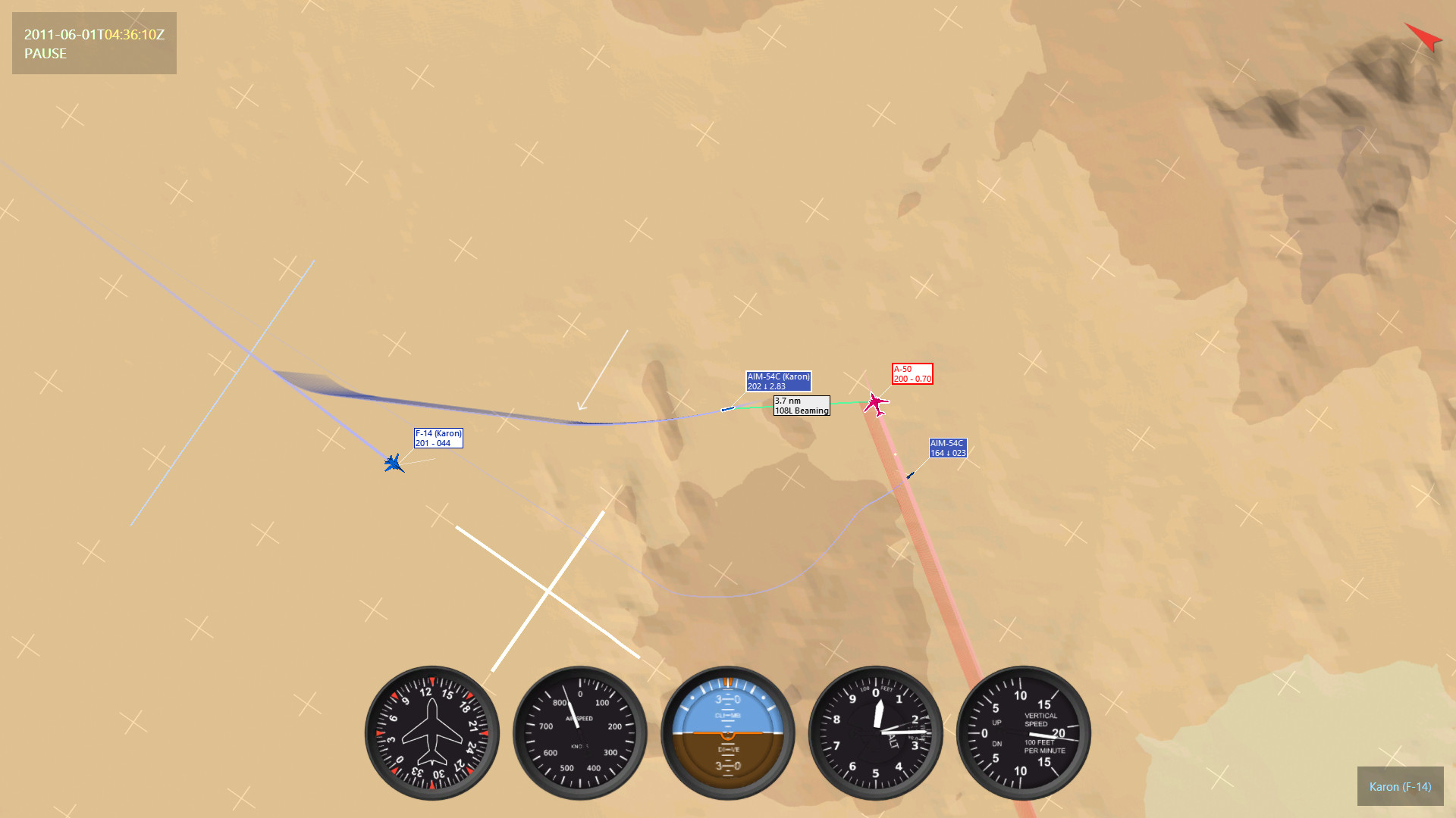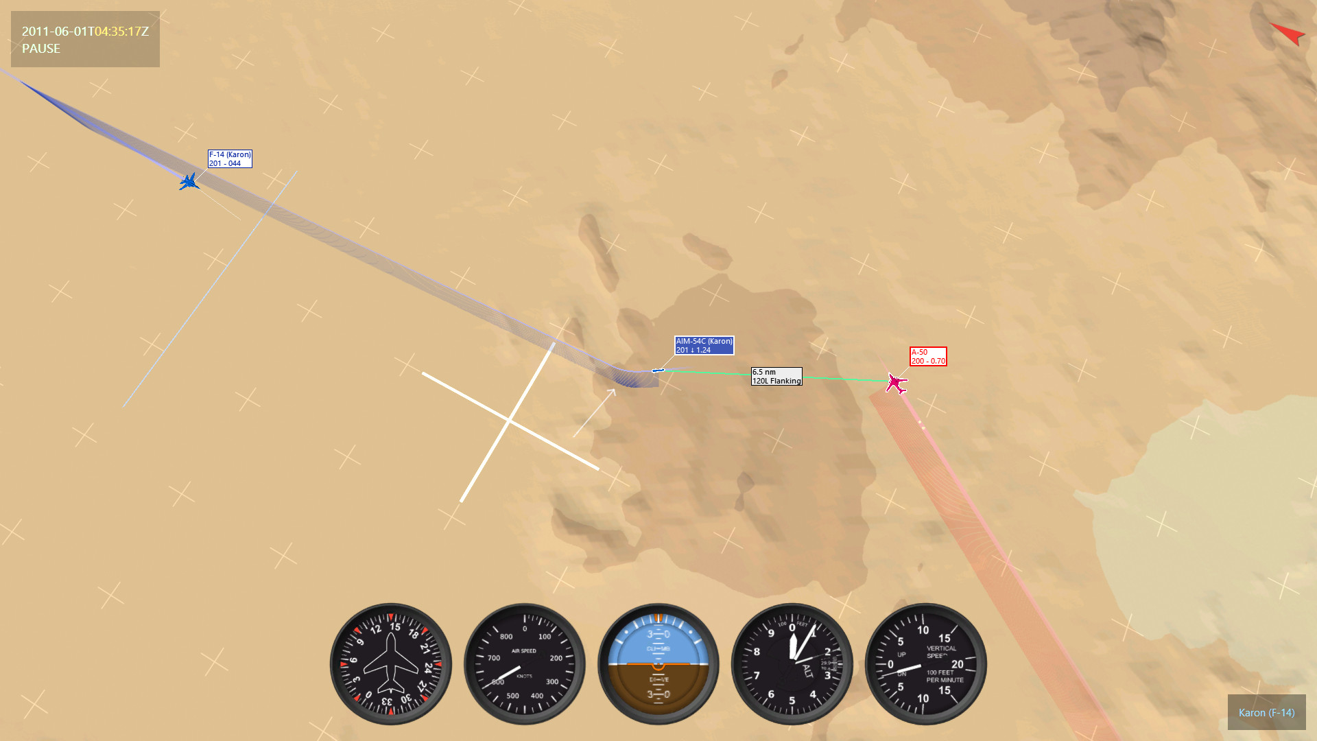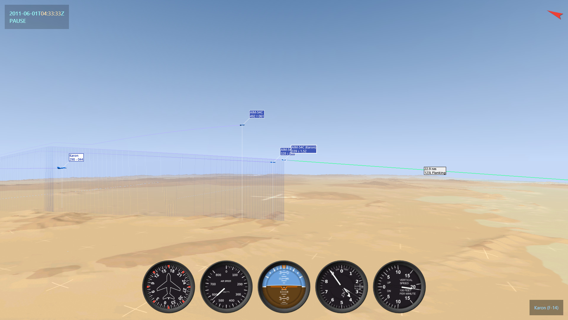 As we have seen, the WCS guides the AIM-54 until it goes Active. What happens if the target disappears entirely from the AWG-9? In order to simulate this behaviour, I turned the WCS to STANDBY right after launch. This is the result: