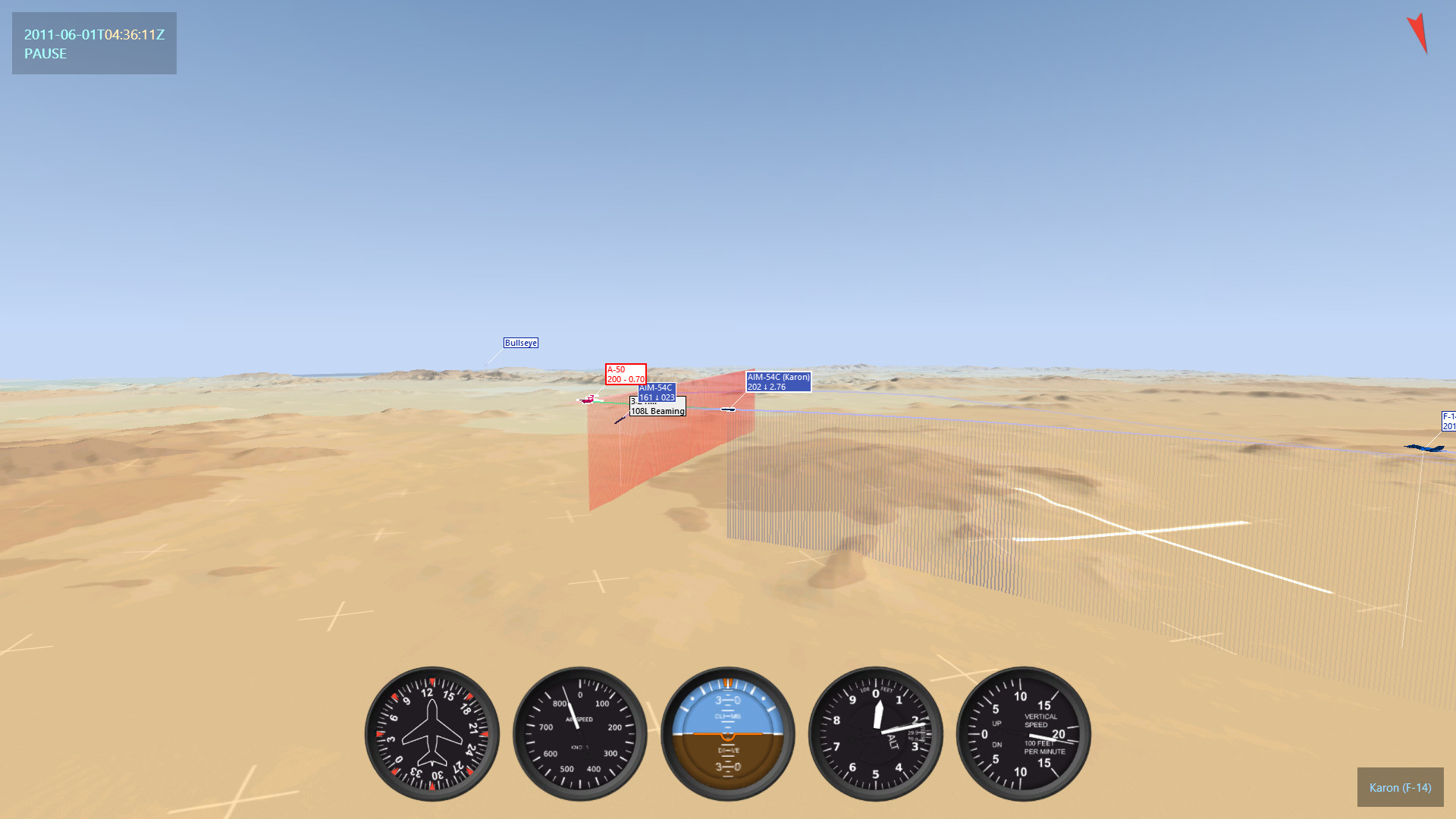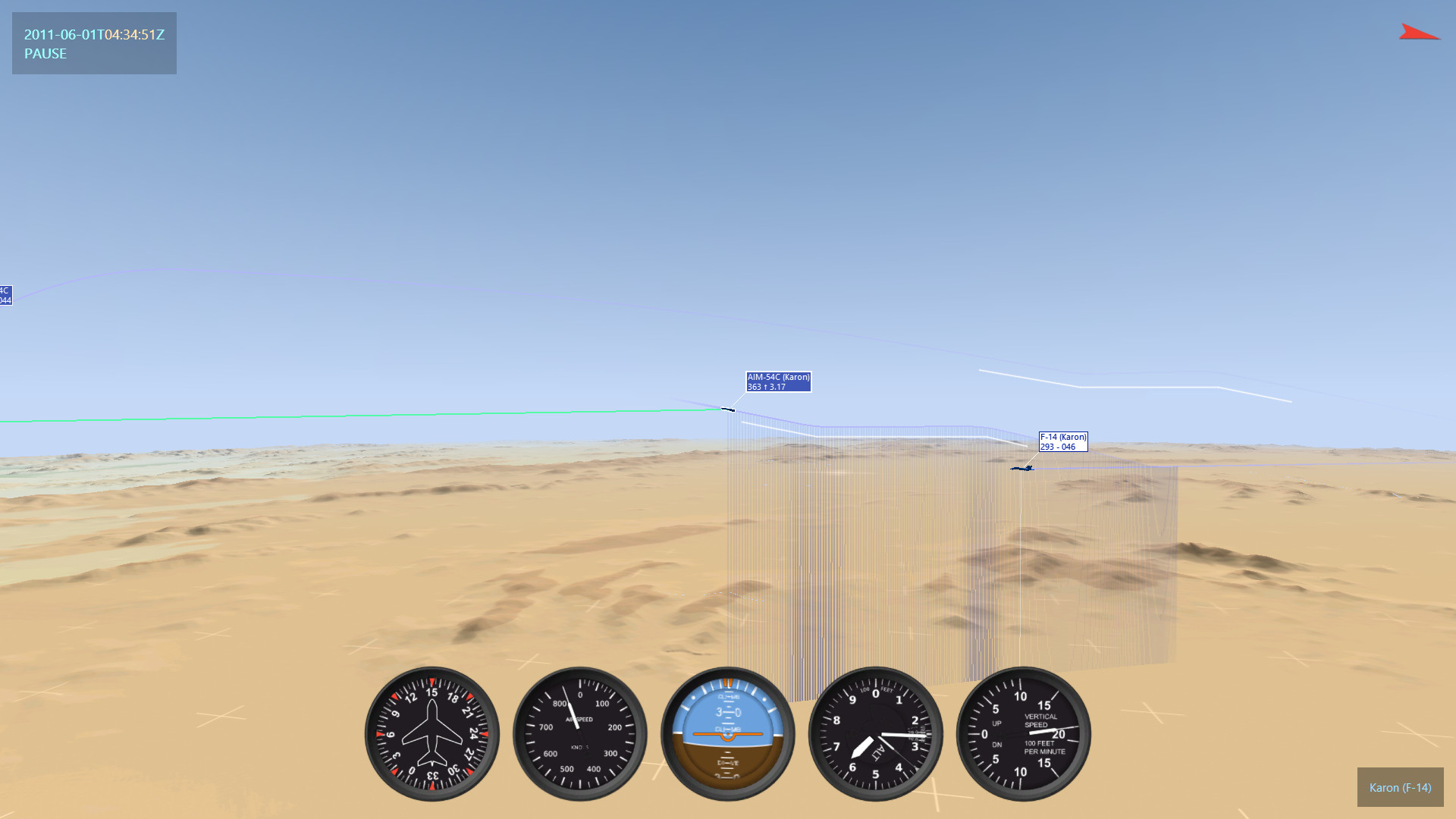 As expected, only one missile continues for the target guided by the AWG-9 WCS. The others stop lofting and proceed straight until they run out of energy or acquire a target.