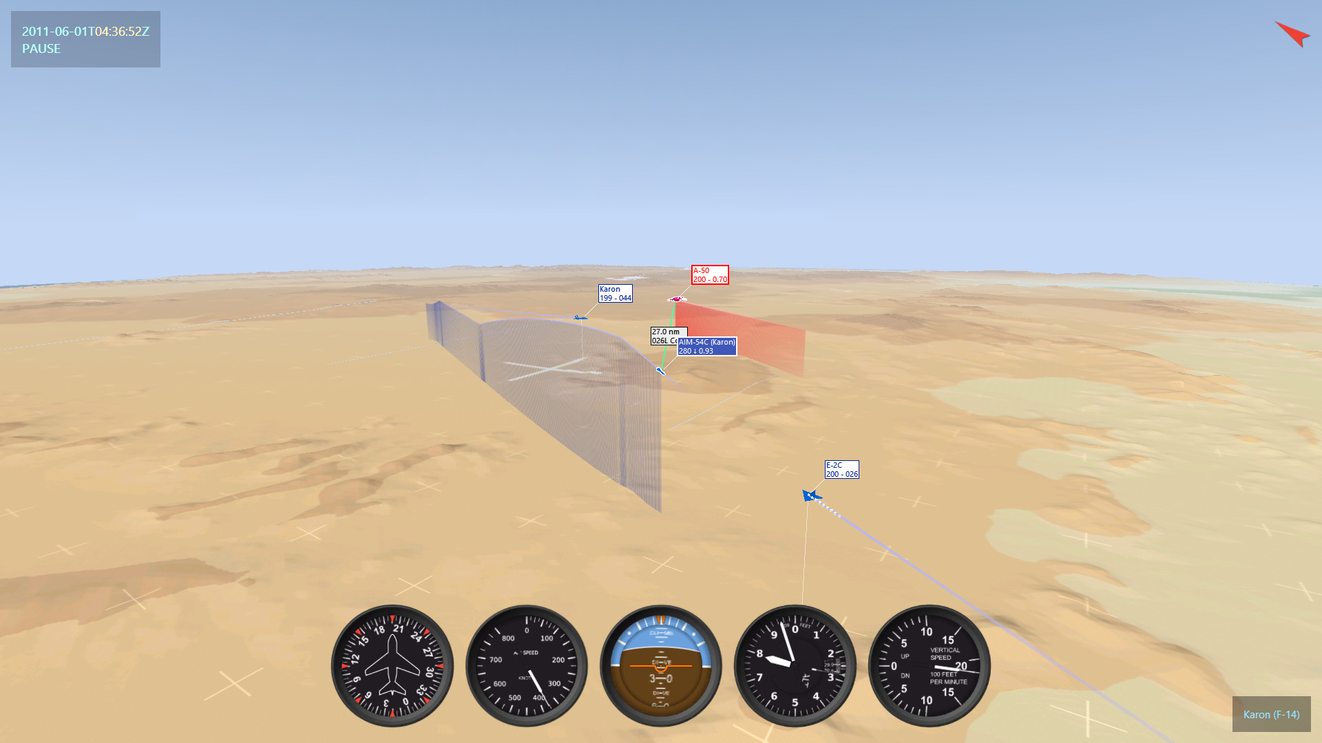 For the last test I placed 2xE3 and 1xA-50 in a wide formation. I found the A-50, launched at 40nm and at ¾ of the AIM-54 flight path I moved the antenna away. The AIM-54 later went active and pointed to a target that was different from the one I launched to. Result: friendly kill.
