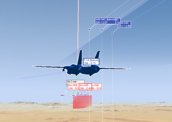 As you can see, no loft if the WCS is not in XMIT mode. The AIM-54 follows a straight path until it goes active, finds a target, and tries to reach it. No loft also means not enough energy to reach the target if the distance between the F-14 and the target is quite high.