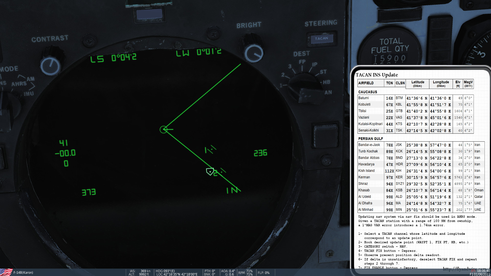 My impression was very different so I decided to test it practically. I created a new mission, spawned a single F-14 near Kutaisi at 10,000ft. I launched the mission, turned on the Active Pause, created a WP on Kutaisi TACAN Station latlongs and activated the TACAN FIX.