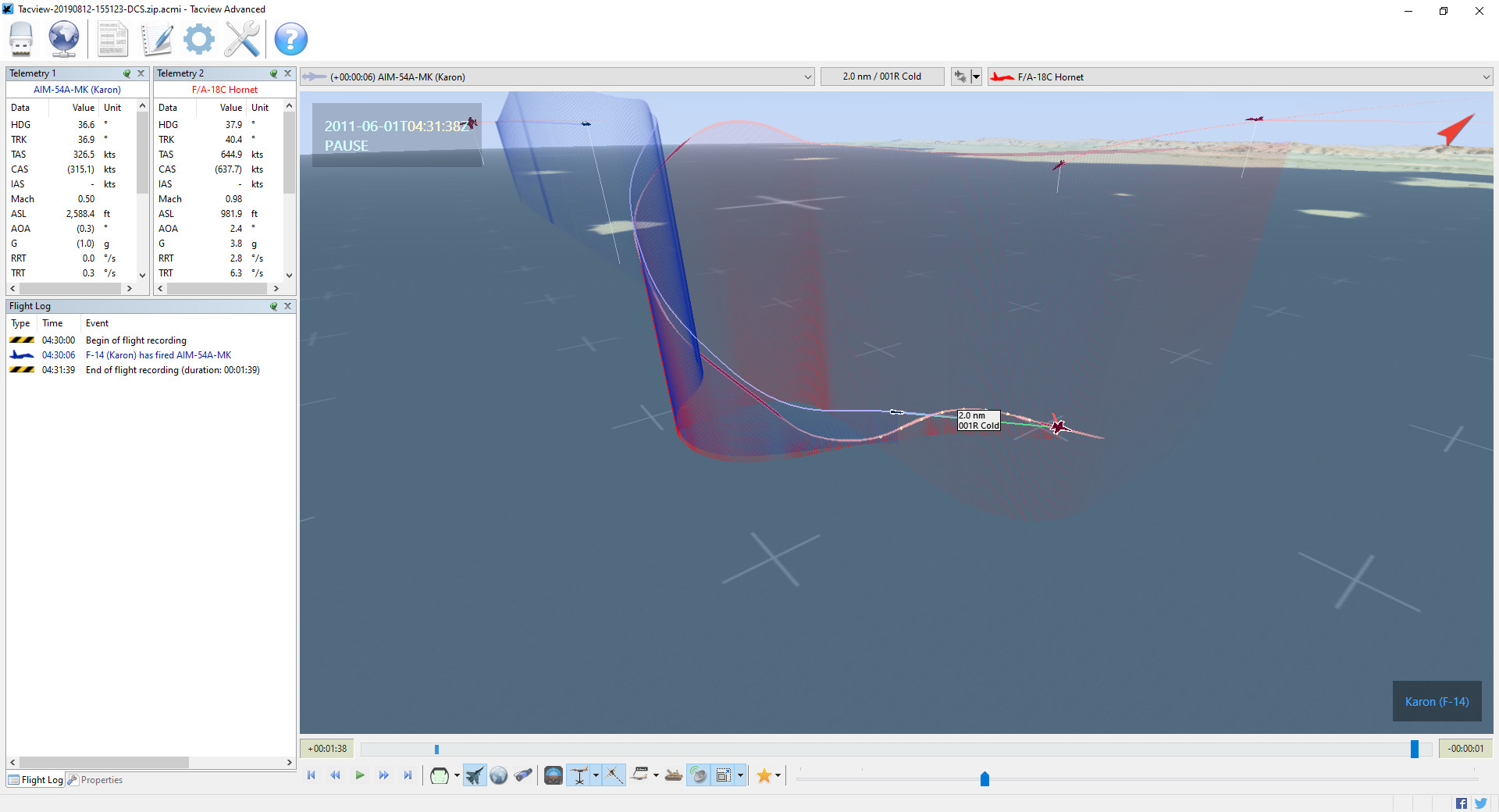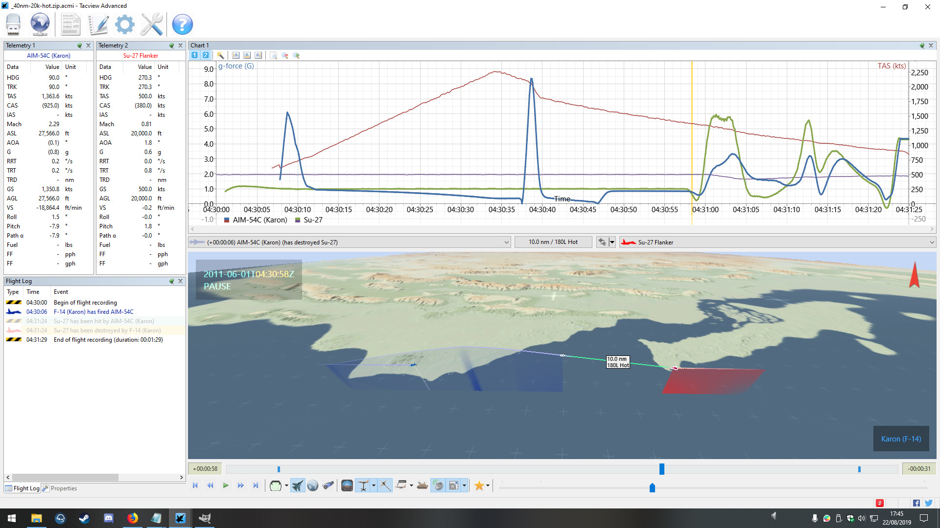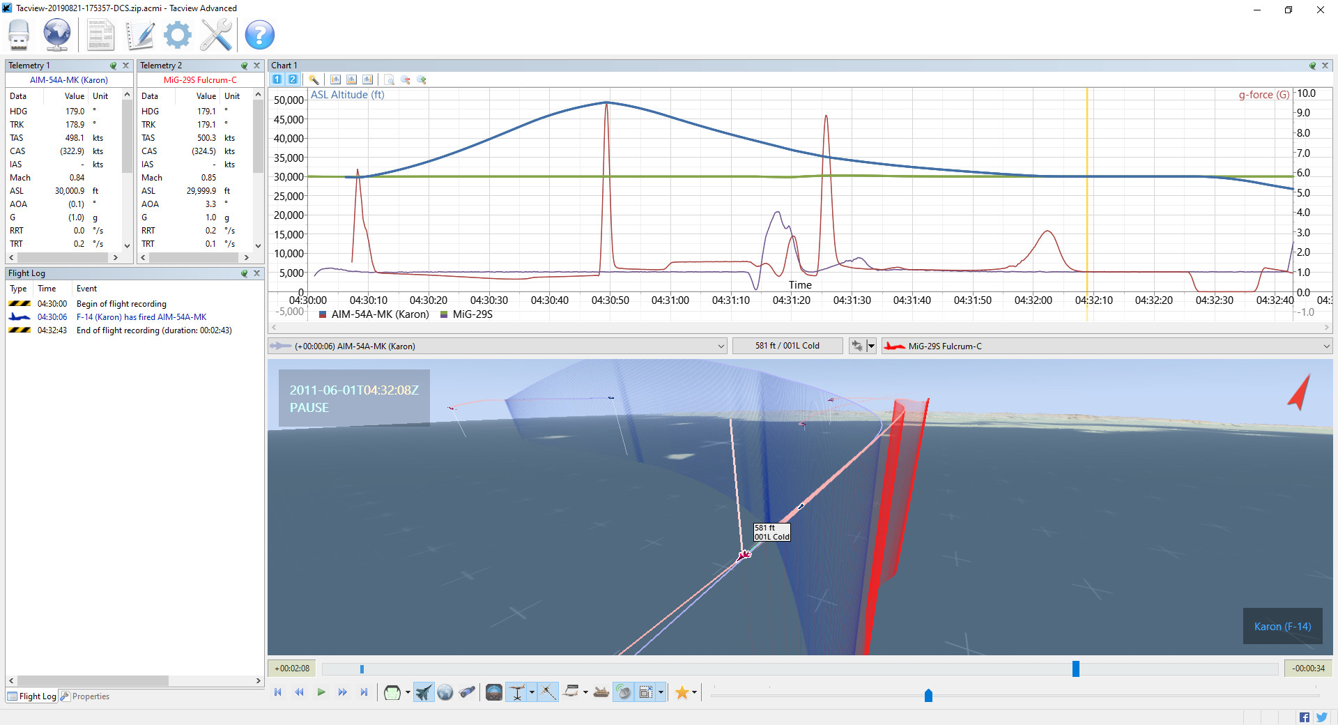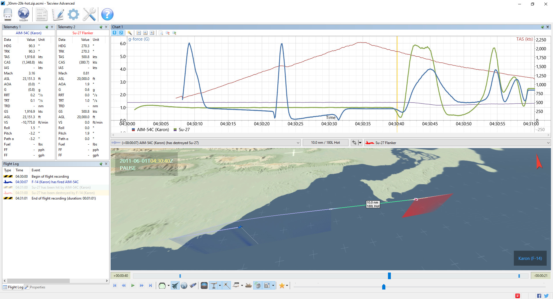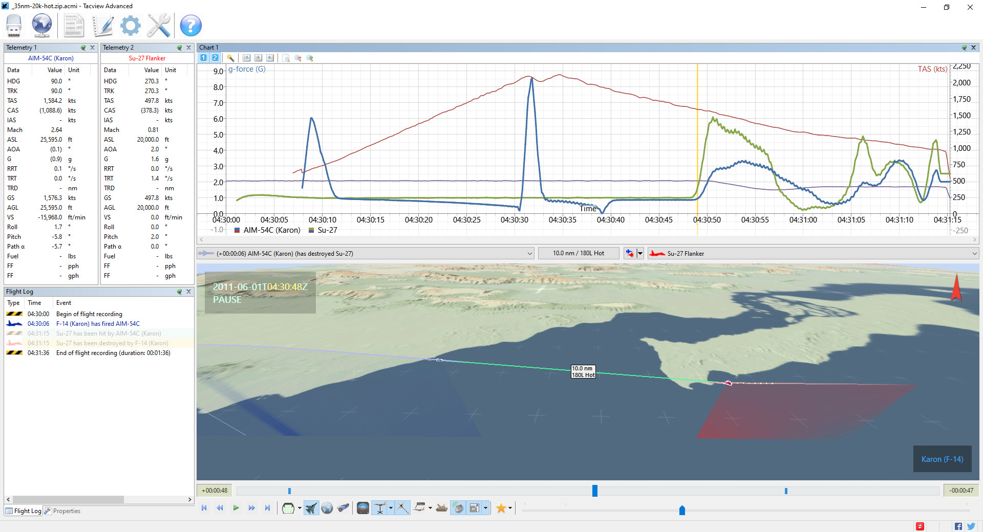 The following are some screenshots from Tacview: