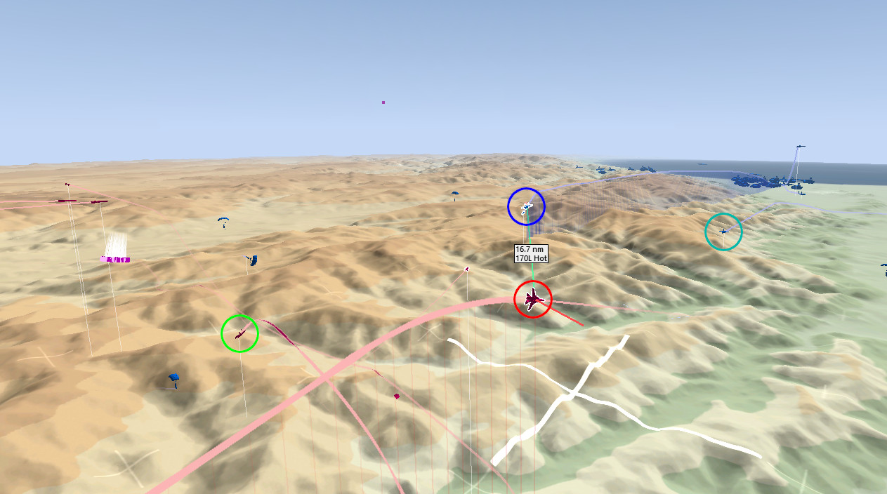 These three waypoints not only delimits the areas but also have friendly AA defences. If in trouble, we knew we could fly over those three points, prior to head towards our airport. With a bit of luck, the fire coming from the ground can disrupt the chasing hostile, hopefully forcing it to return back to its lines.