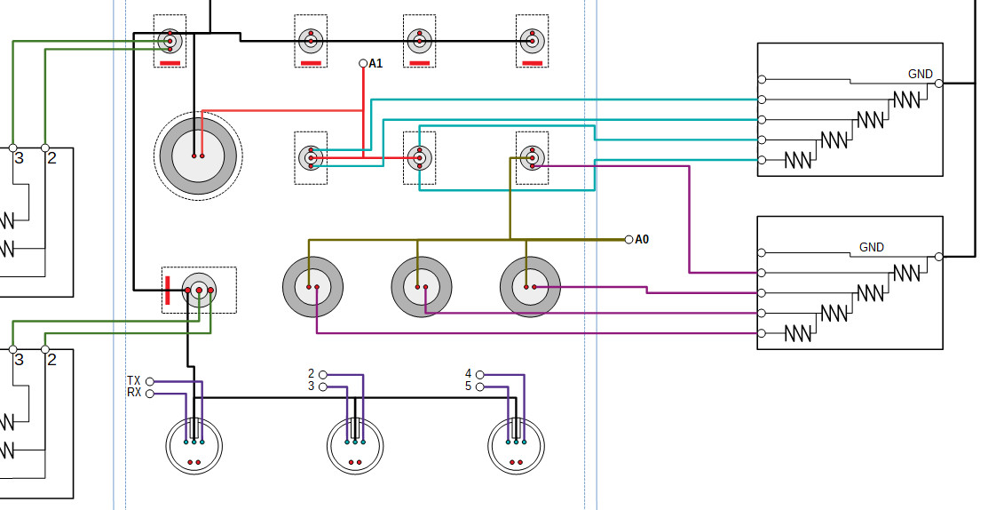 After discussing for so long, what is the result of this different implementation? This is an example, the first Panel to use this new algorithm rather than the button matrix: the “Auxiliary Panel”. We have seen part of its wiring diagram above.