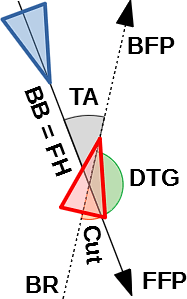 Note that I represented Target Aspect, Cut and DTG as per their definition (out of simplicity, in some cases I drew the opposite angle):