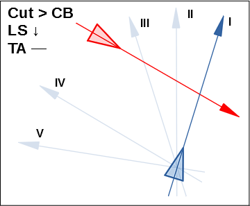 The three categories are easily explained: a Cut into decreases the Lateral Separation (BFP and FFP intersect), a Cut away increases the LS (the fighter moves away from the BFP), the Cut equal to BR, maintains LS.