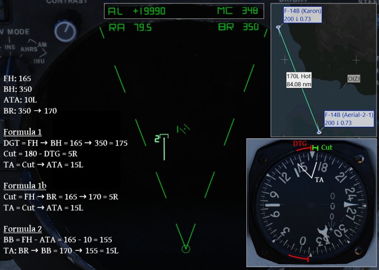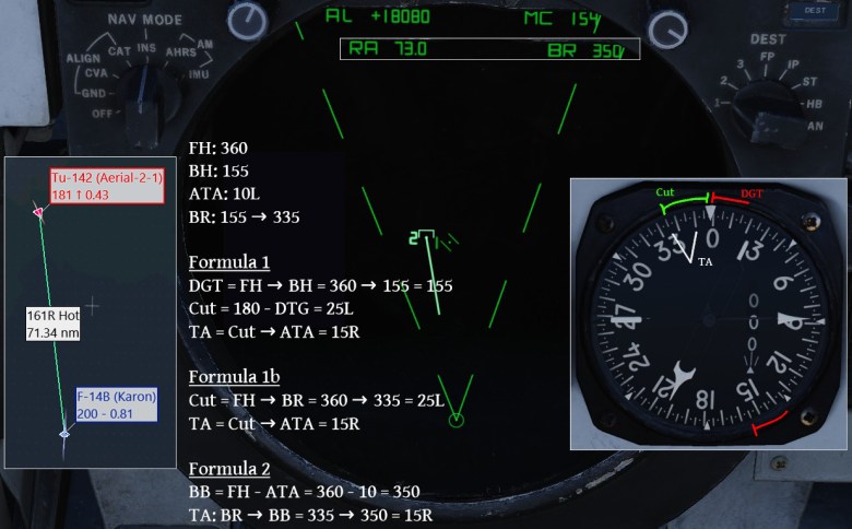 This formula is should be used when the BRAA is passed. It is very simple as the BR is immediate (the documentation stresses the importance of being able to calculate the BR in a second), then it is just a matter of “moving to” the BB. If no tactical control is available, then BB can be calculated as FH ± ATA (add if ATA Right, subtract if Left).