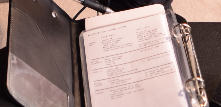 I placed Velcro around the LCD. When I play as RIO it holds a clipboard, when I’m piloting depends on the module (pics from this article):