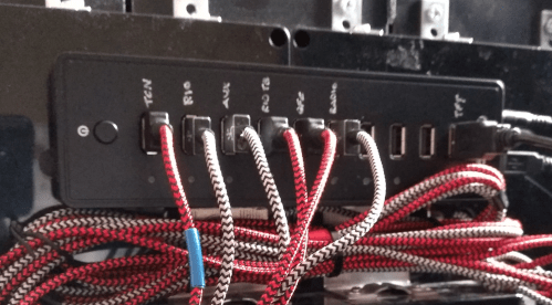 This is the panel I use the most. If the number of functions sounds unrealistic, consider that every 3-way momentary works as a 3-way latched, therefore controlling three buttons each. There are six of them, for a total of 24 buttons. Each encoder controls three buttons as well, CW, CCW, Push. There are 7 encoders, for a total of 21 buttons. Now double them up, due to the 2-way Master switch.