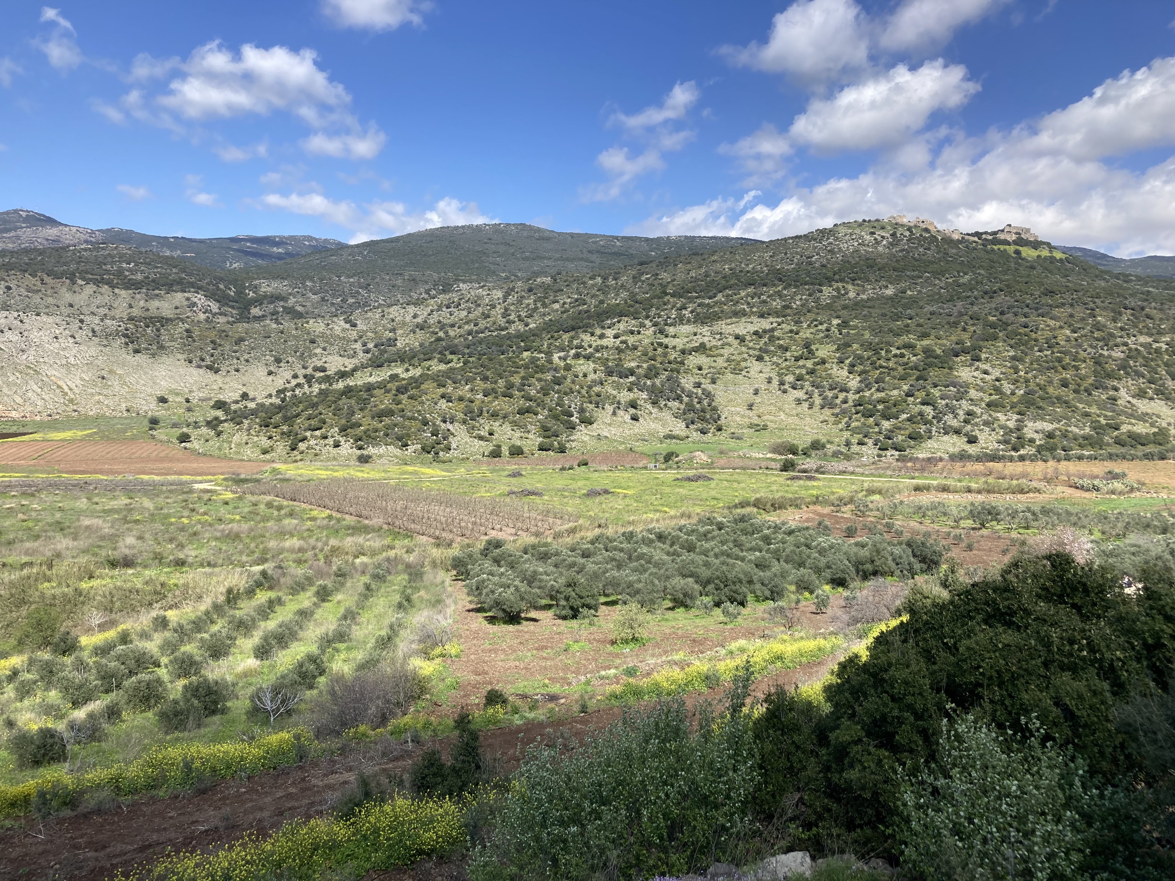 Looking further North-East. The Nimrod Fortress is visible on the ridge line.