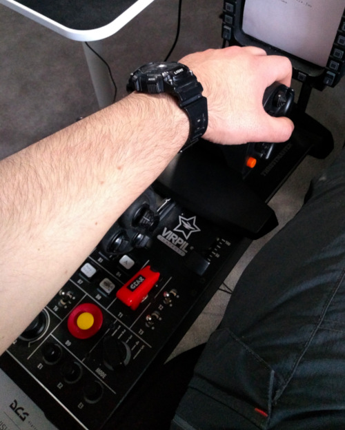 As mentioned, when is used for the RIO pit, the CH Fighterstick is angled inwards by 15°/20°. When it is used for the Apache, it is orthogonal to the desk.