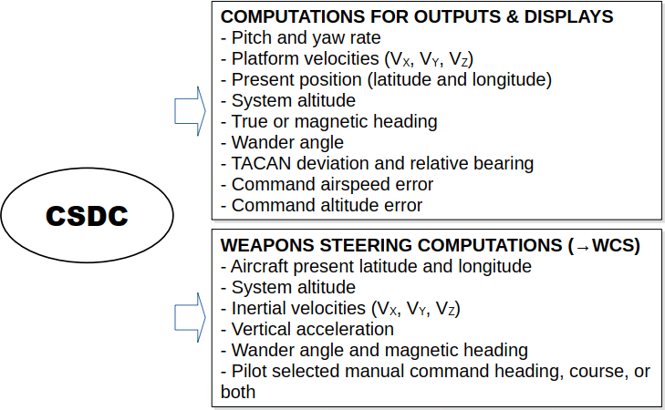 Additionally, the inertial navigation system operates with the AWG-9 Weapon Control System (WCS) computer and the Computer Signal Data Converter (CSDC).