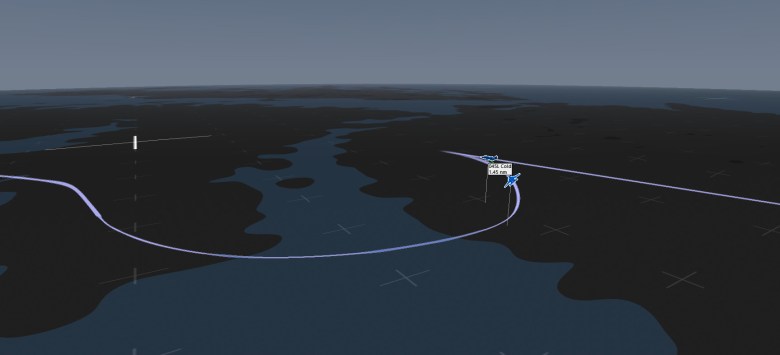 The image above shows the situation before the conversion turn. Textbook-wise, the amount of lateral separation is excessive (44,850ft rather than 40,000ft), but for this simplified approach it will do.