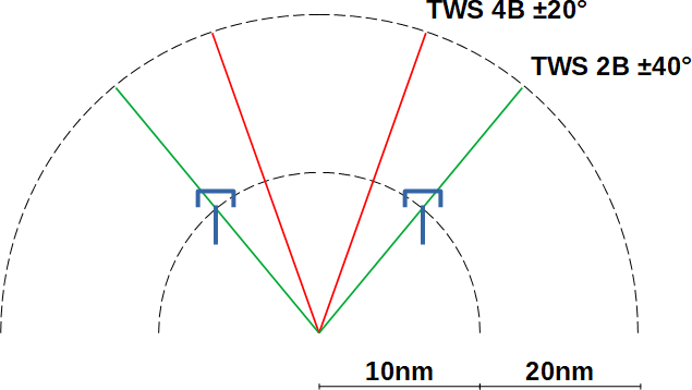 In this specific case, the target is almost on collision course already, thus the required correction is less dramatic than other cases. The WCS is automatically setting the TWS Auto to 4B ±20°.