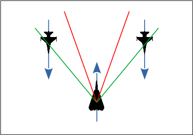 The Cut concept is described in the Intercept Geometry study. If you are new to it, or it sounds too complex, consider that the fighter’s goal is to fly towards the reciprocal of the contact. For example, if the contact is flying due South (180°), then the fighter will fly due North (360°).