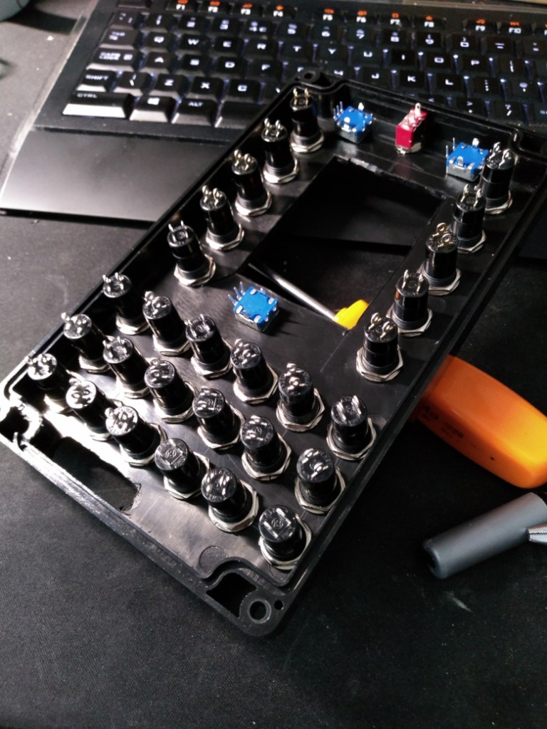 Due to the arrangement of the buttons, the drilling phase is simple and straightforward. I only have a simple hand drill though, I totally need to get a small CNC! For this reason, the buttons won’t be as neatly arranged as they should, something that bothers my OCD a little 🙂