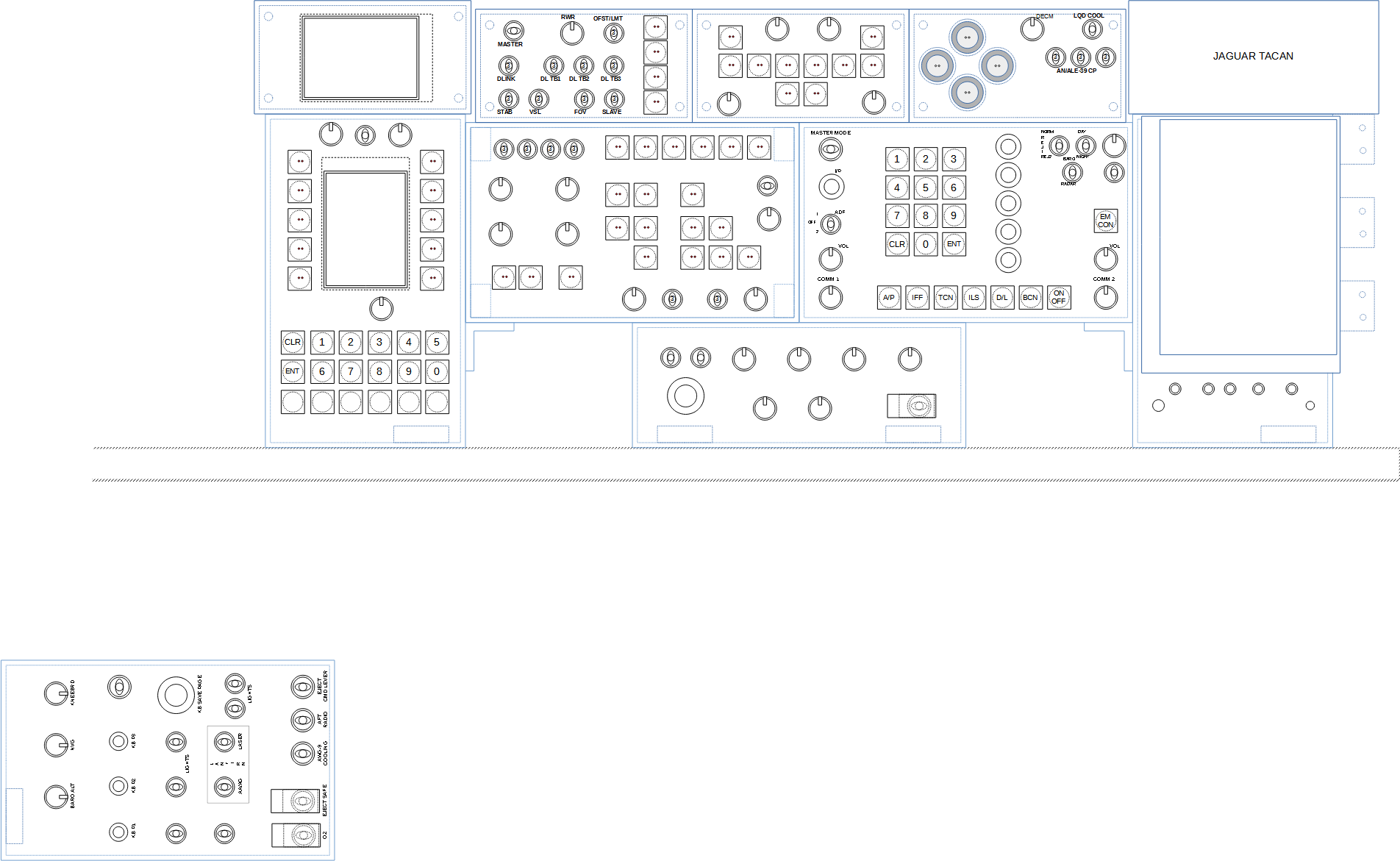 The F-15E UFC is a bit more complex: it has the same keypad, the same 10 selection buttons, but an additional series of functions and two more knobs. Therefore, this new panel must be able to satisfy the needs of the Mudhen’s UFC.