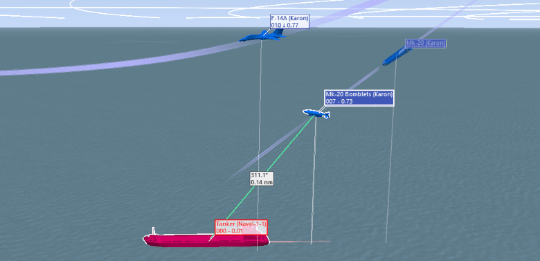 The figure below shows one example; only one Mk-20 was employed. However, the high-speed pass barely scratched the paint of the three BMPs placed as targets (one of the BMPs lost a few decimetres of HP…).