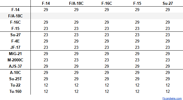 Testing this scenario is simple, and crews can notice how, past burnthrough range or if the target’s ECM is disabled again, the WCS updates the TTI. However, presently, it seems that the missile guidance is not properly adjusted, possibly due to the limitations of the missile implementation. It is a big problem, however, as any aircraft can defeat a TWS launch just by toggling their ECM on and off.