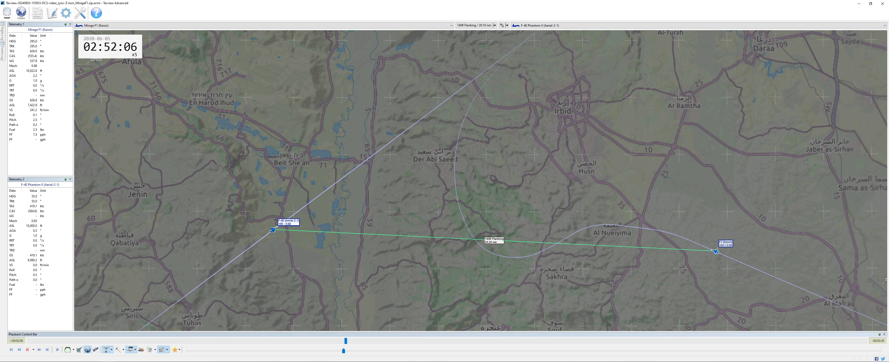 The always fantastic TacView provides a better view of the flow. As mentioned, I am definitely not a good pilot and I have never used the Mirage F1 for tests longer than this intercept, but I “kind-of-still-managed” to get there. With some practice and experience, this manoeuvre can be successfully executed with fantastic results.