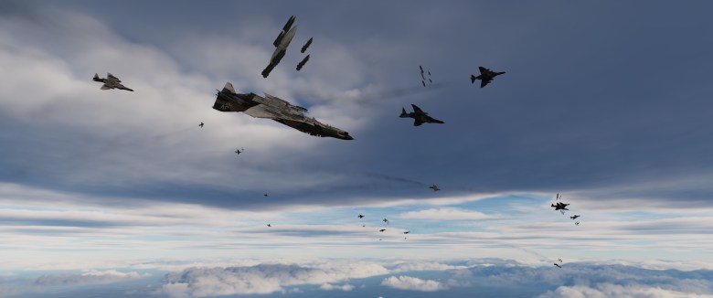 Woah, the whole formation is defending, jettisoning bombs and rockets, and diving for safety. This first implementation of the new AI Group logic looks fantastic. Obviously,