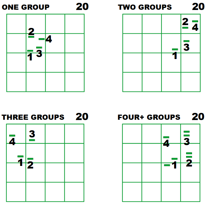 The intercept profile needs to be coordinated and simple in order to arrive at the merge as a four-ship flight. Between the elements, power settings and/or airspeeds should be the same in order to preclude a late merge by the trailing element. Offset intercepts should consider all the players in a four-ship. Generally, the leader of an offset intercept should strive for a 20° to 30° maximum offset to keep from presenting gimbal problems to other members of the four-ship formation. Before deciding on a targeting plan, an overall targeting philosophy should be established. This would include scenario considerations such as the threat, rules of engagement (ROE), mission, and ordnance. A good general targeting philosophy is to target as many threat groups as possible with a priority that is established by their range and aspect. Another guideline is to strive not to fly past untargeted or unseen threats. Before assigning targeting responsibilities, the terms “threat” and “group” should be defined. A front aspect capable bogey is a threat if he’s on the scope, within 10 miles, and with a greater than 120° aspect angle. He’s also a threat in any aspect if he is within visual range of the formation. If he’s not front aspect capable, the aspect should be somewhat higher (greater than than 120°). The numbers above are only rules-of-thumb. If it is assumed that a bogey isn’t a threat and he ends up killing a member of the formation, a gross mistake has been made. A good definition of a group is a visual formation within 3 NM. That fits the targeting philosophy because an F-15 targeting one group has a good chance of picking up a tally on the entire formation. That F-15 pilot should be able to employ ordnance on more than one bandit or at least negate attacks from that formation. There are a number of ways to target. Two methods that are easy to understand and execute are targeting based on a range sort or an azimuth sort. Both should be intercept options, with the game plan determining the preferred targeting method. This ensures that the sort can be executed without comm if required. Range sorting lends itself to a box formation and to offset intercepts. Azimuth sorting best supports a wall formation and no offset intercepts. A good way to brief the targeting plan is to establish the targeting priorities. The priorities describe how to target one group, two groups, three groups, and four or more groups. With a targeting philosophy of prioritizing threats (if there are more than four groups), a four-ship package would target the four highest threats and then attempt to leapfrog through to the next series of threats. With less than four groups, a four-ship can target within groups. If a four-ship box formation has a priority range sort breakout, an example targeting plan is: