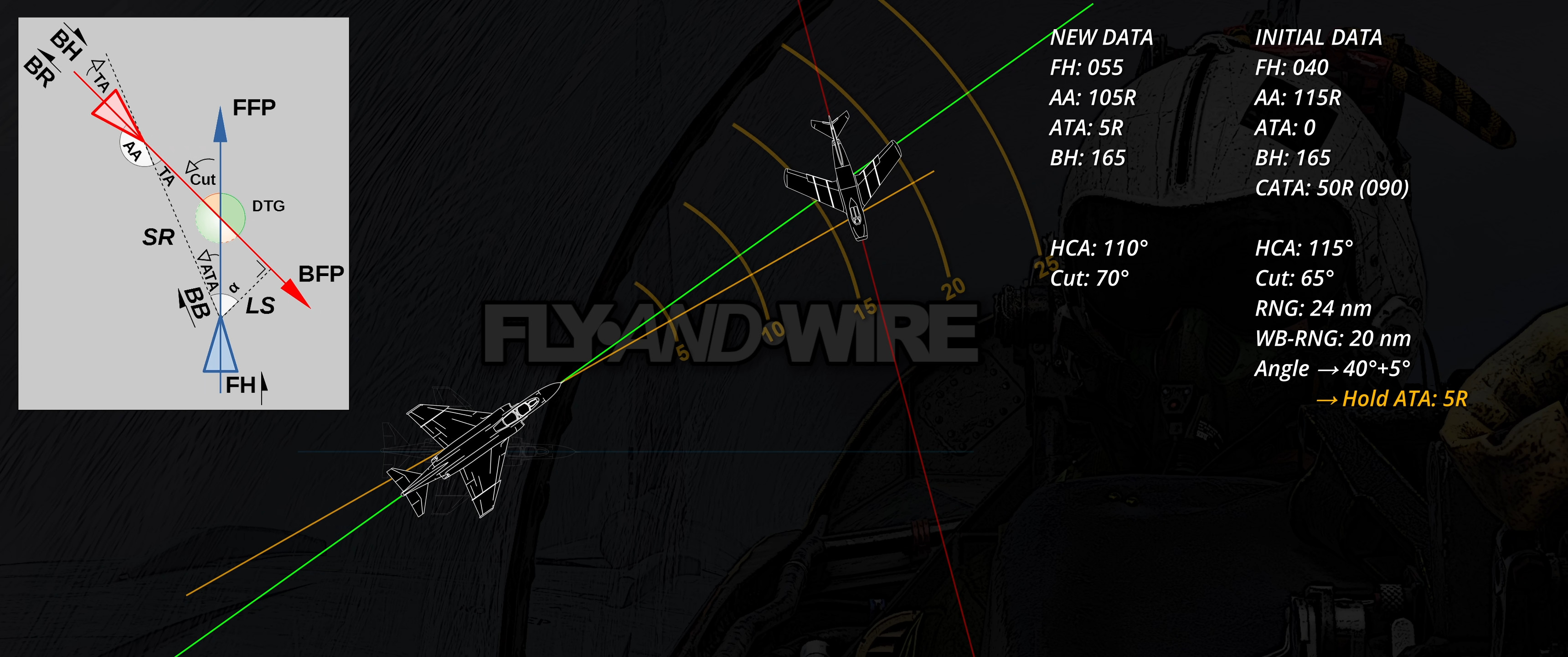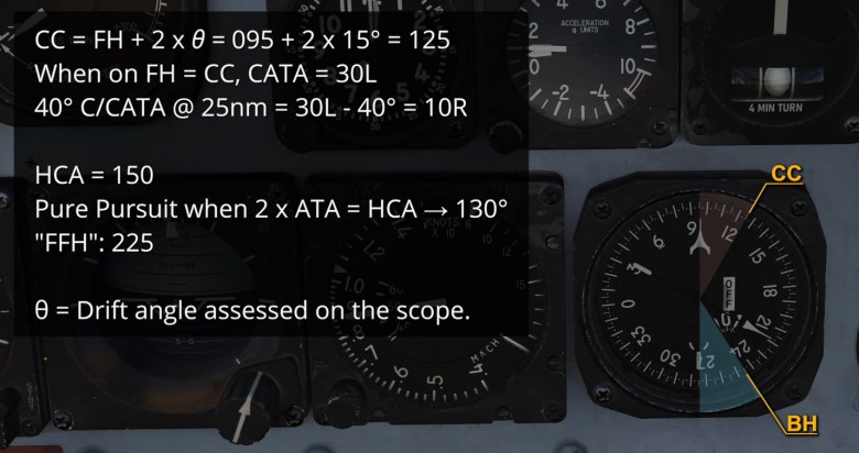 - Lastly, if the target is not manoeuvring, I think the easiest way to monitor the curve and assess when to switch to pure pursuit is to calculate the heading at which the fighter should be to satisfy the ATA and HCA relation. This “FFH”, or Final Fighter Heading, allows the crew to focus on the situation and monitor the turn with a quick glance at the BDHI.
