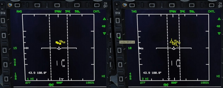 As we know, if you are not new to these shores, TWS is limited to certain combinations of bars and azimuth in order to illuminate contacts at a fixed interval. The avionics computes changes between each refresh and determines tracks and other information. Needless to say, this is a great radar mode for situational awareness, but in real life, it is pretty bad for engaging targets. In DCS, it is instead the rule.