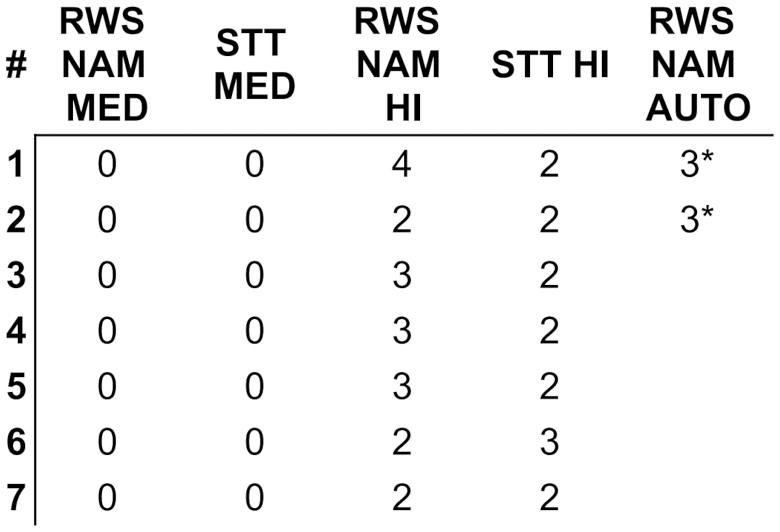 This table shows how many times the lock was broken during the anticlockwise pattern from left-to-right, and then right-to-left. Medium PRF offers solid performance no matter the mode used, whereas STT is slightly more reliable in High PRF.
