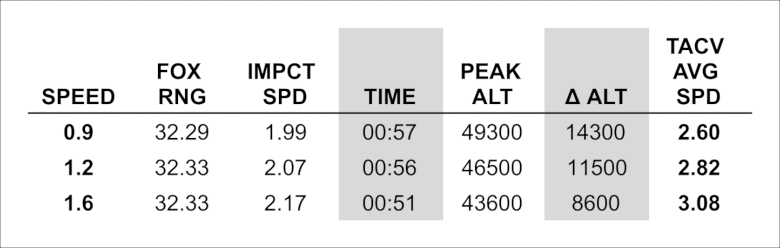 The fourth and last test attempts to demonstrate how missile performance changes depending on many parameters. In particular, these are human-executed launches with manual loft. Note that the combination of variables is not optimal for a very long range. These are just examples to prove a point.