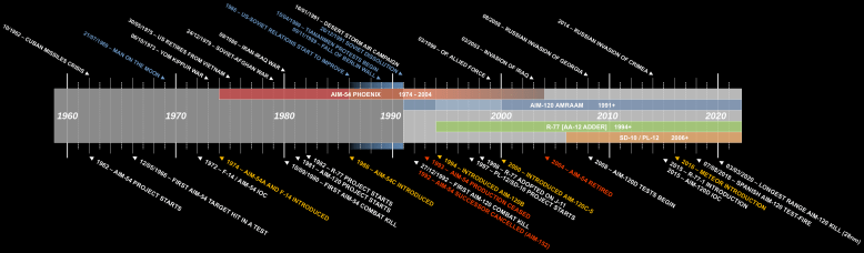 Time-wise, the closest competitors of the R-77 are the AIM-120B and partially the AIM-54C, although the era of the Phoenix and the Tomcat was already ending.