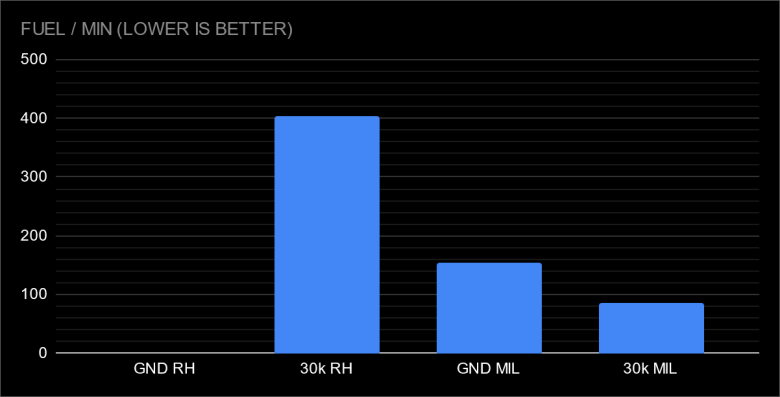 Regarding fuel consumption and autonomy, the Tumansky R25-300’s ground-level flameout leaves use without one crucial parameter. If there is enough interest, I can collect more data while maintaining a speed close to M1.1 and verify the fuel consumption over time. If the Military thrust setting is an indicator, we may find an extremely high fuel consumption of circa 720 lbs per minute.