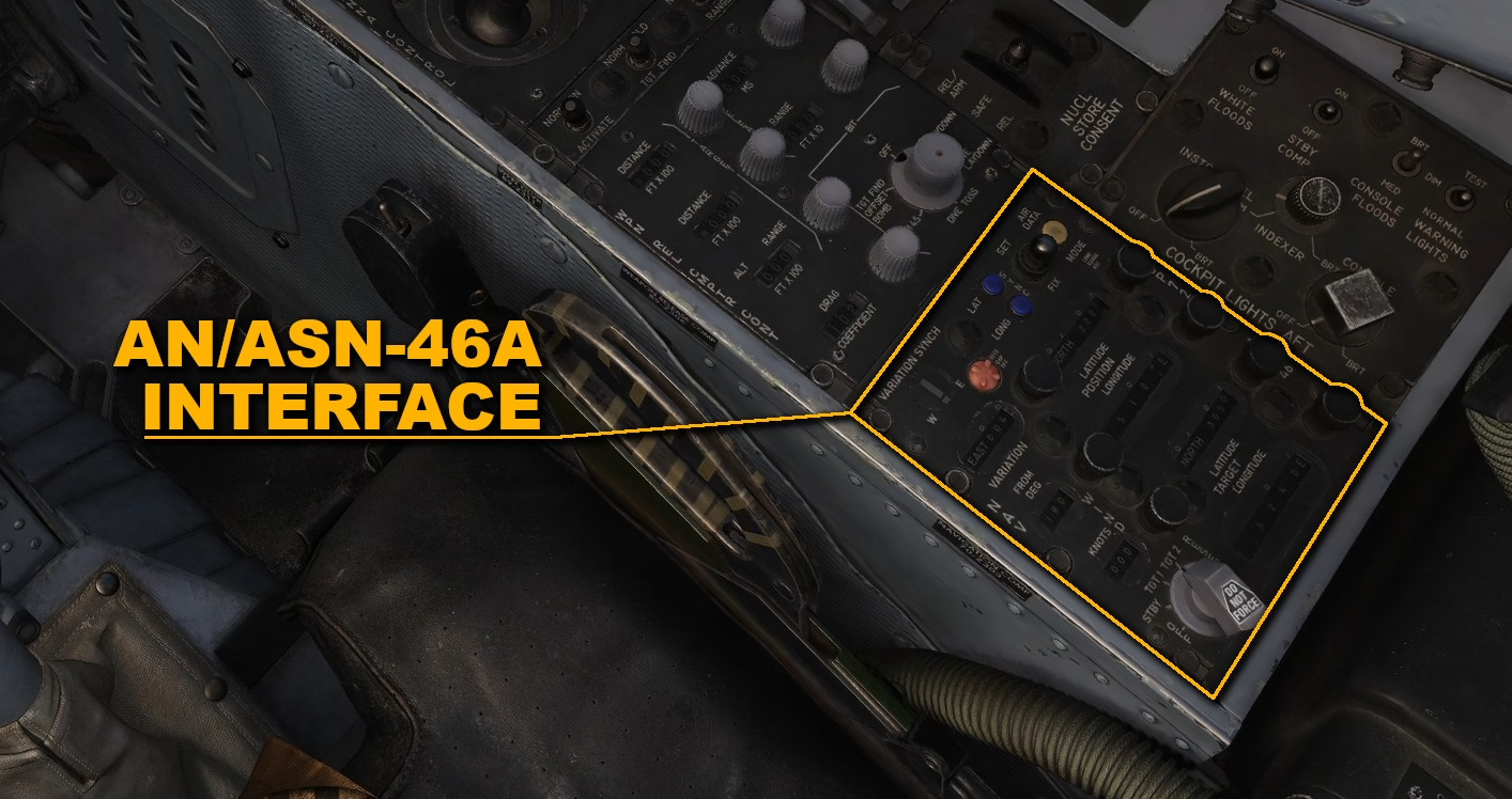 The Navigation computer, the AN/ASN-46A, is interfaced via its dedicated control panel, located in the back seat’s cockpit, near the right thigh of the WSO. It provides navigation indication and information then fed to other displays and can store only one point.