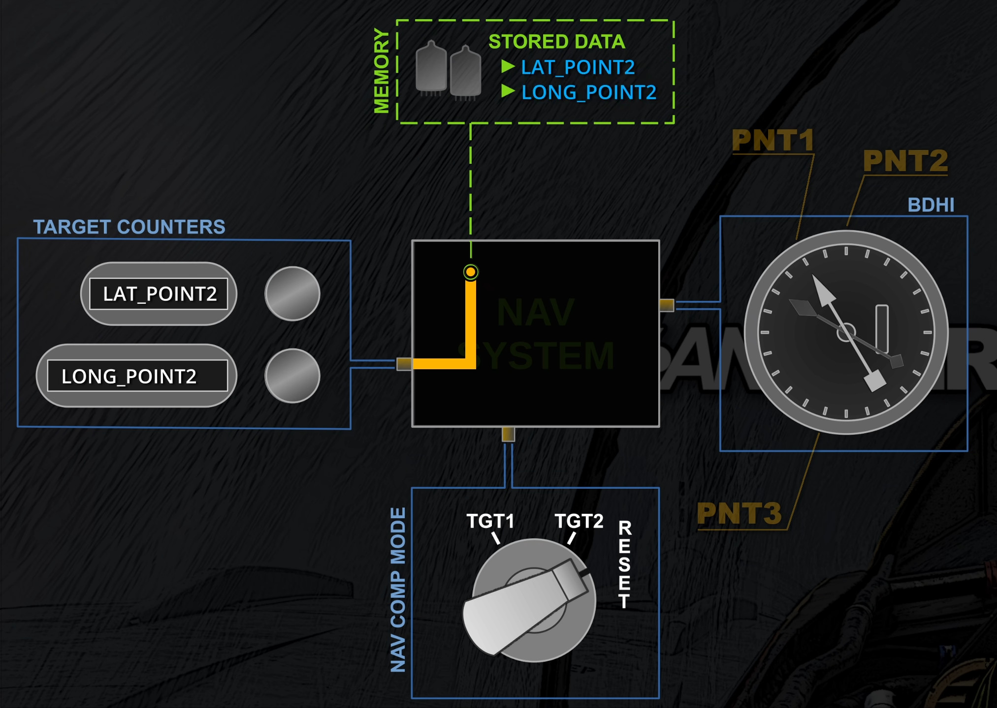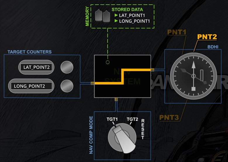 - Target 2, instead, takes the coordinates stored in the Navigation Computer memory and feeds them to the BDHI.