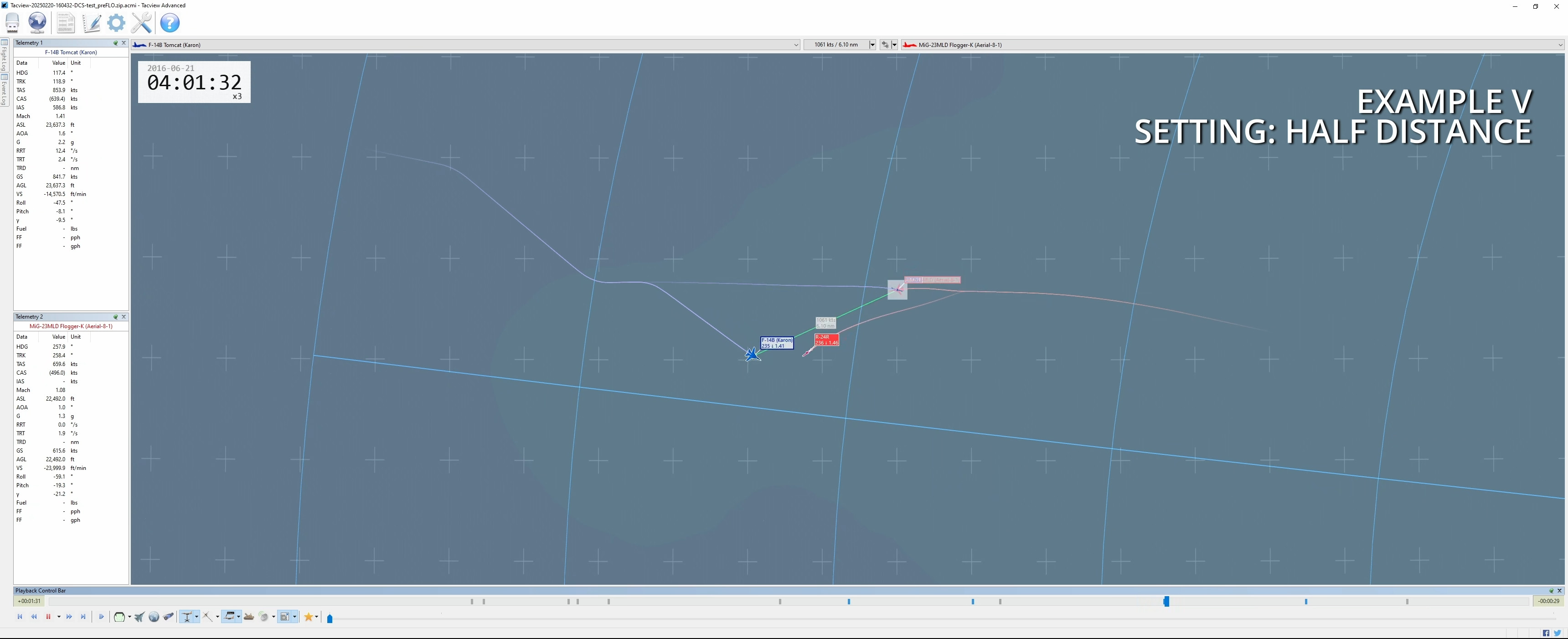 As appreciable from TacView, the AI’s Sparrow was defeated kinematically by a hard crank. My AIM-7 followed a similar fate. As happened in the previous examples, the AI decided to dive, perhaps a scripted behaviour, to help with the APQ-120’s restrictions. Something that probably does not even affect the AI, but it is good to see a more varied engagement.