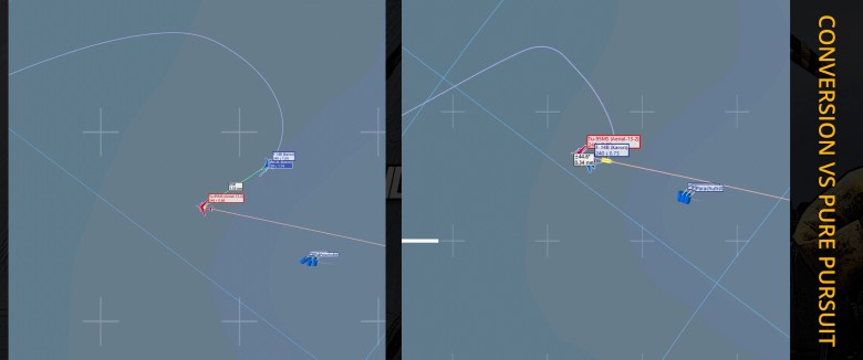 Before moving to the conclusions, let’s see a final comparison between a stern conversion and pure pursuit.