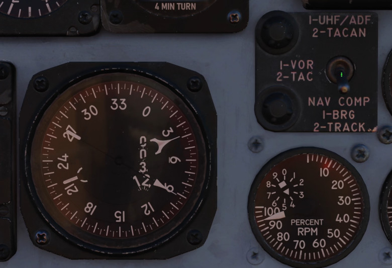 Let’s start with the TACAN reference. As the Phantom flies around, the BDHI constantly points towards the emitter’s position, with some accuracy caveats depending on range, intrinsic imprecision, et cetera. This situation is quite simple and straightforward, as this is how most waypoints, NAVAIDs, and so on work.