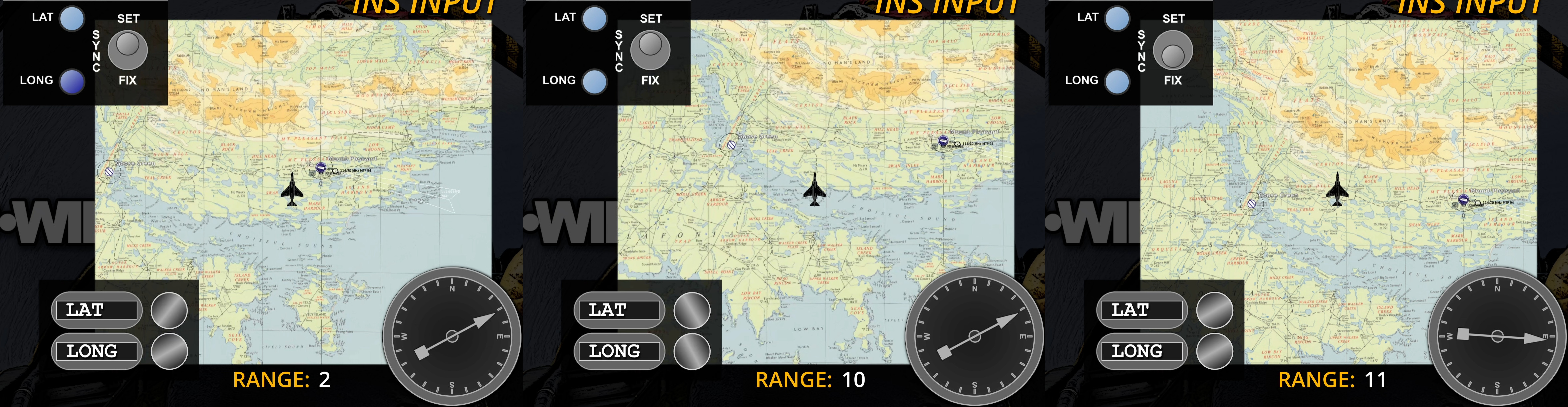 These considerations lead to the second point. What has been discussed so far implies that bearing and range are not changed directly: they result from the INS Fix’s position. In other terms, the WSO does not have a counter for the bearing and one for the range, but has to fiddle with latitude and longitude to achieve the desired result.