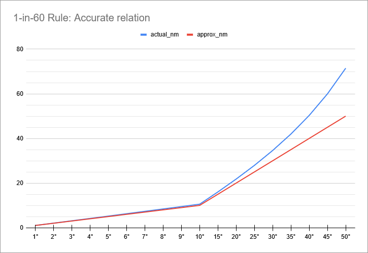 The mathematical formula behind the one-in-60 rule may sound familiar, as it is the same one used to determine the antenna elevation angle and related parameters on FlyAndWire a few years ago.