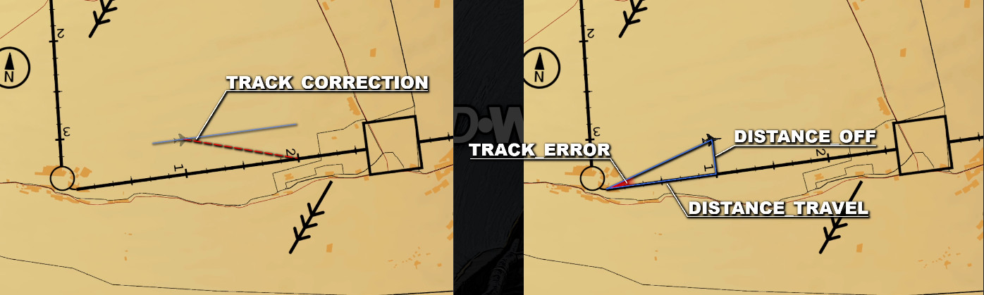 Once the error is known, the crew can turn towards the track for a number of degrees equal to the just calculated value, and it will now find itself following a parallel track.