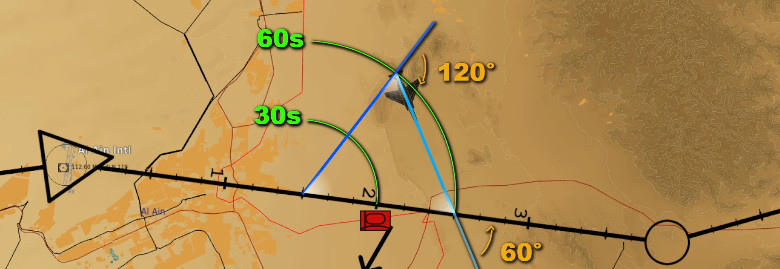 As a sidenote, and just because theorycrafting is a lot of fun, this manoeuvre can be used to introduce a spatial separation between two sections of the same flight. For example, if two sections are to attack the same target with a 60-second delay between them, elements 3 and 4 can turn 60°, hold for 60 seconds, and then return to the planned track. This would result in a 60s separation between the two.