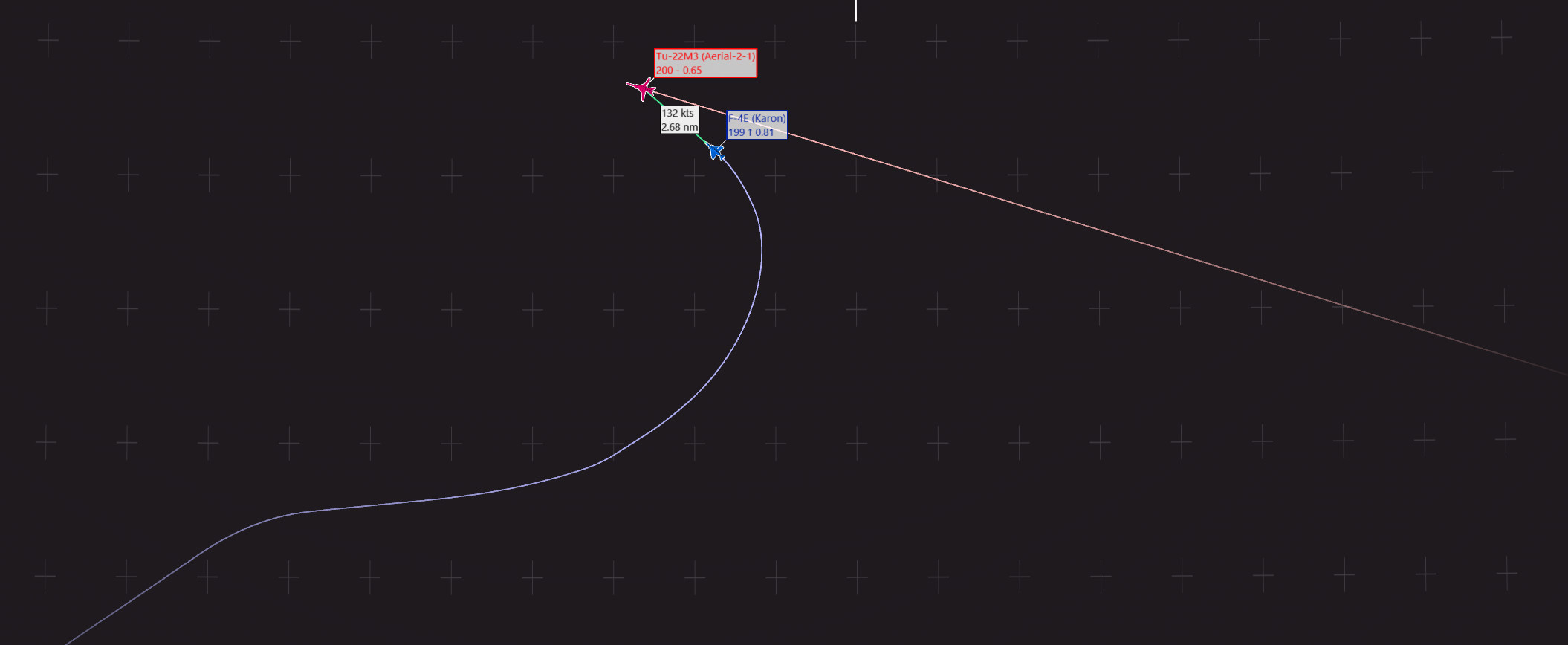 Something I did not do, and on purpose, is verify VC. As TacView showed, rather than being a 5:4 speed ratio, ergo a 1.25:1, this intercept was actually a quite absurd 1.65:1. If the goal is to saddle or at least avoid overshooting, the throttle should be managed more carefully.