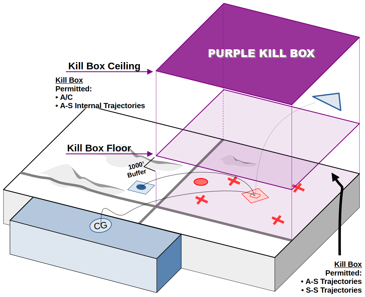 - Purple Kill Box: same as the Blue Kill Box, but permits the integration of surface-to-surface indirect fires.