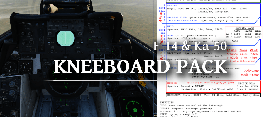 The activity of our F-14 Tomcat pilots in our squadron prompted us to create a “Quick Reference Kneeboard”. This pack contains checklists, useful data and graphics that help understand certain calculations.